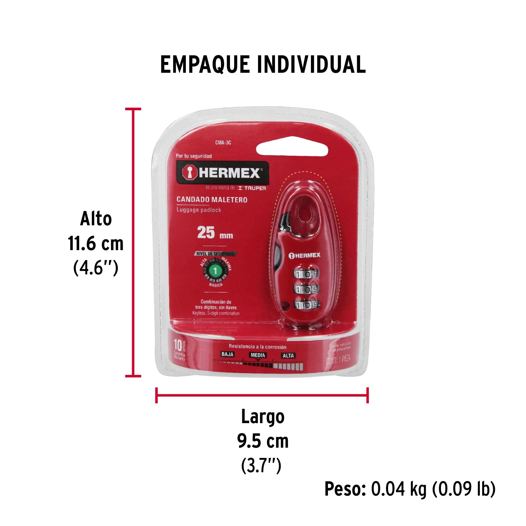 Metallgehäuse, die Kombination kann auf eine persönliche Kombination mit 3 Ziffern zurückgesetzt werden, mit der Möglichkeit, Hunderte von Kombinationen zu generieren